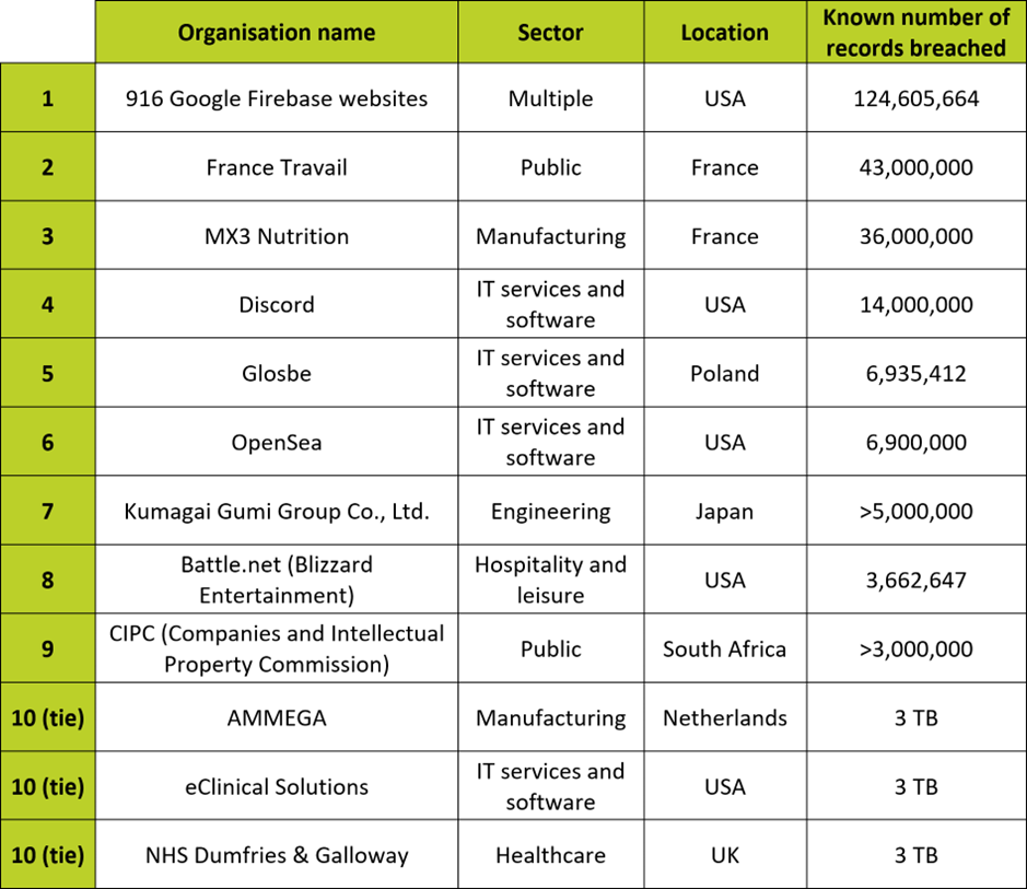 Top 10 biggest breaches