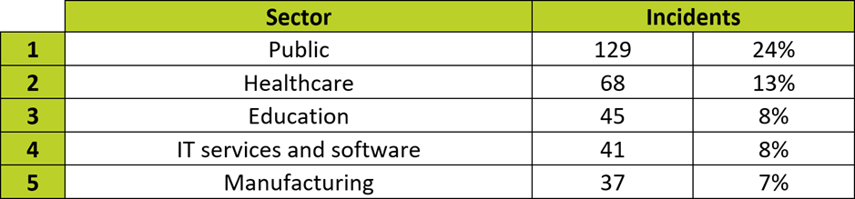Top 5 most breached sectors (by number of incidents)