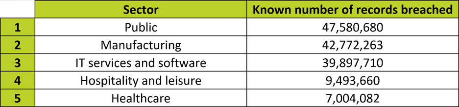 Top 5 most breached sectors (by number of records)